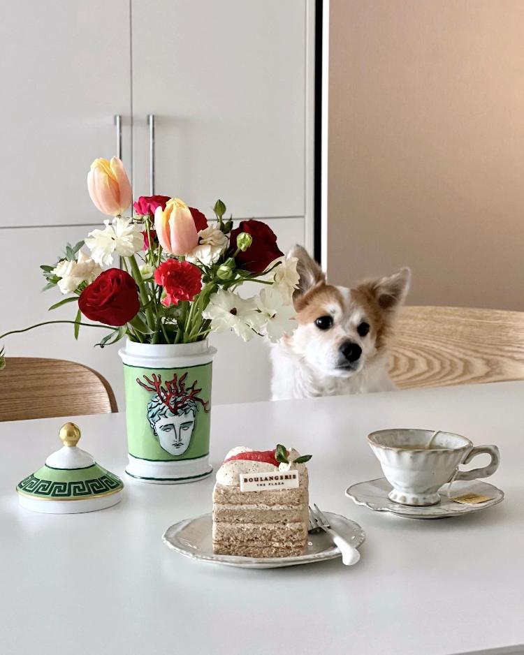 맛있는 케잌+커피와 귀여운 댕댕이까지! 홈카페 만족도 최고겠어요 😋💛