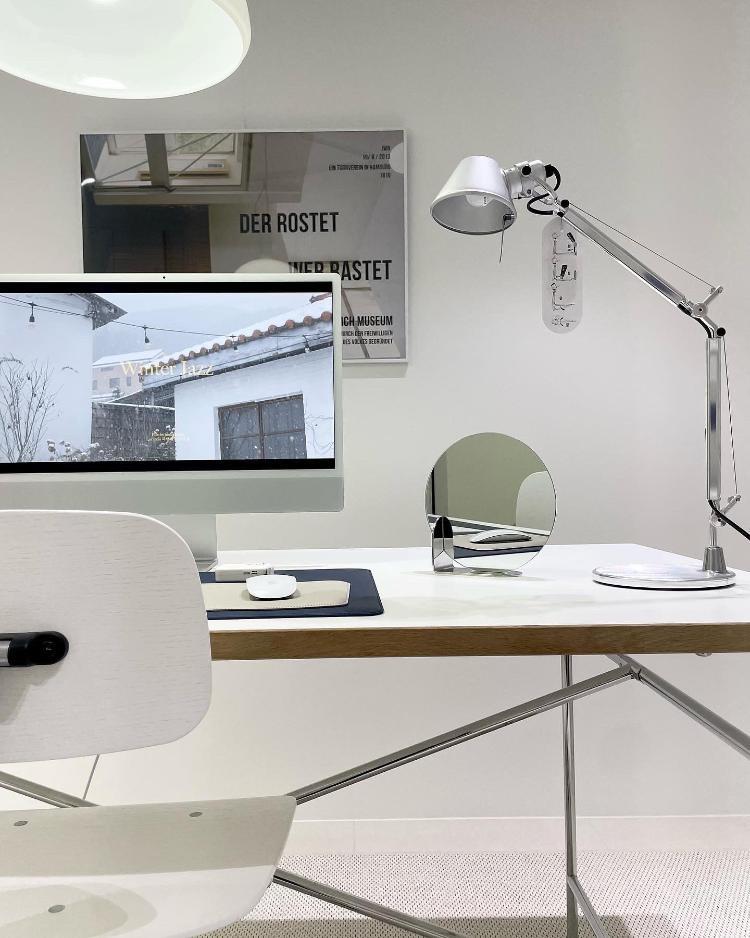 다음으로 소개해드릴 조명은 ‘아르테미데 톨로메오’입니다. 주로 데스크에서 사용하는 포인트 직접 조명으로 공간에 맞는 크기 제품을 선택해 사용할 수 있도록 다양한 크기 옵션이 있습니다.