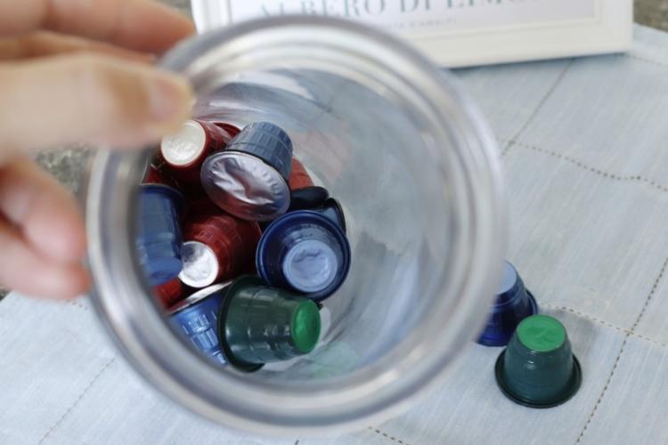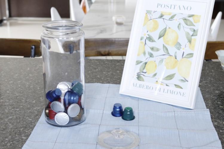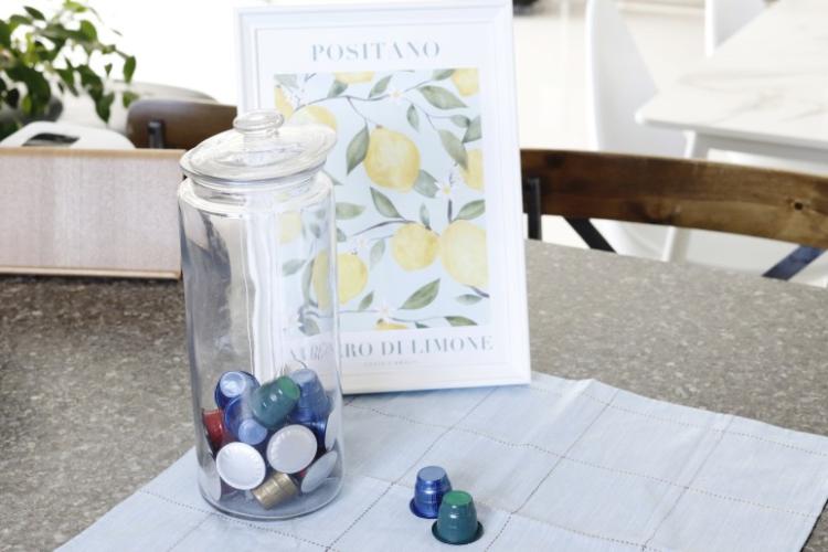 이렇게 뚜껑이 있는 유리보관용기는 캡슐 또는 티백을 넣어 보관하고 있어요.