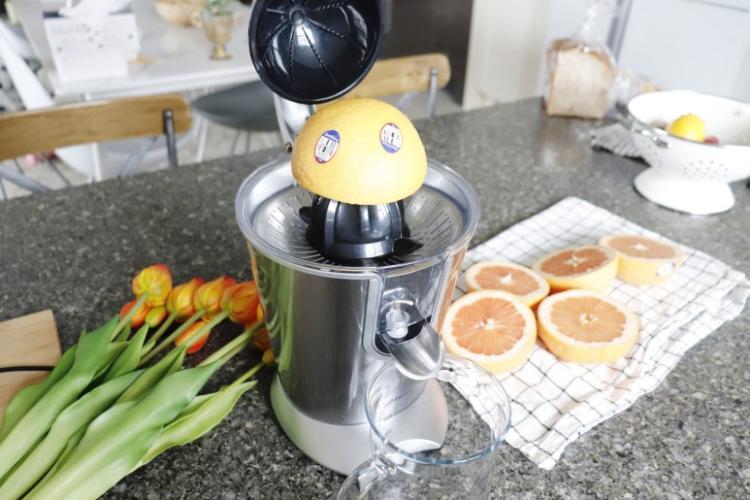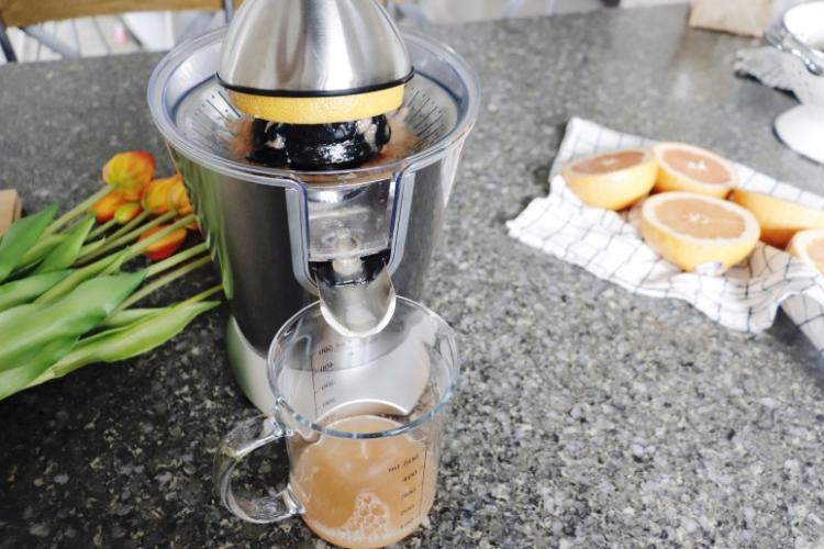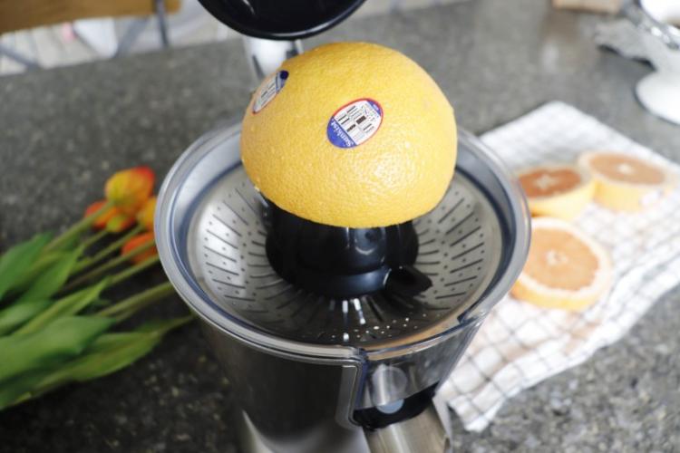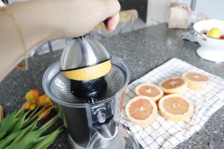 반자동 착즙기라 자몽 또는 레몬을 반으로 자른 후 머신에 올린 후 살짝 눌러만 주면 깔끔하게 착즙이 된답니다.