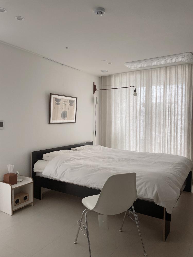 붙박이장 때문에 안방은 공간이 작아서 딱히 가구로 꾸밀 수 있는 공간이 한정되더라구요. 그래서 방에도 역시나 조명으로 포인트를 주기로 했어요.