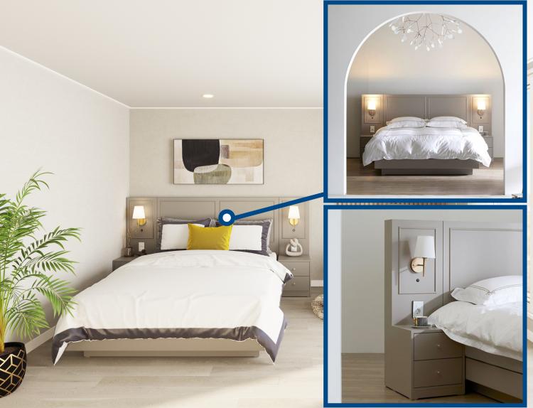 마지막으로 몬드리안 침대는 편의성까지 갖췄답니다. USB포트와 1구 콘센트가 매입되어 있어 조명 조절부터 충전까지 한 번에 할 수 있는데요. 침대에 누워 모든 것을 해결 할 수 있는 올인원 호텔 침대랍니다 ㅎㅎ