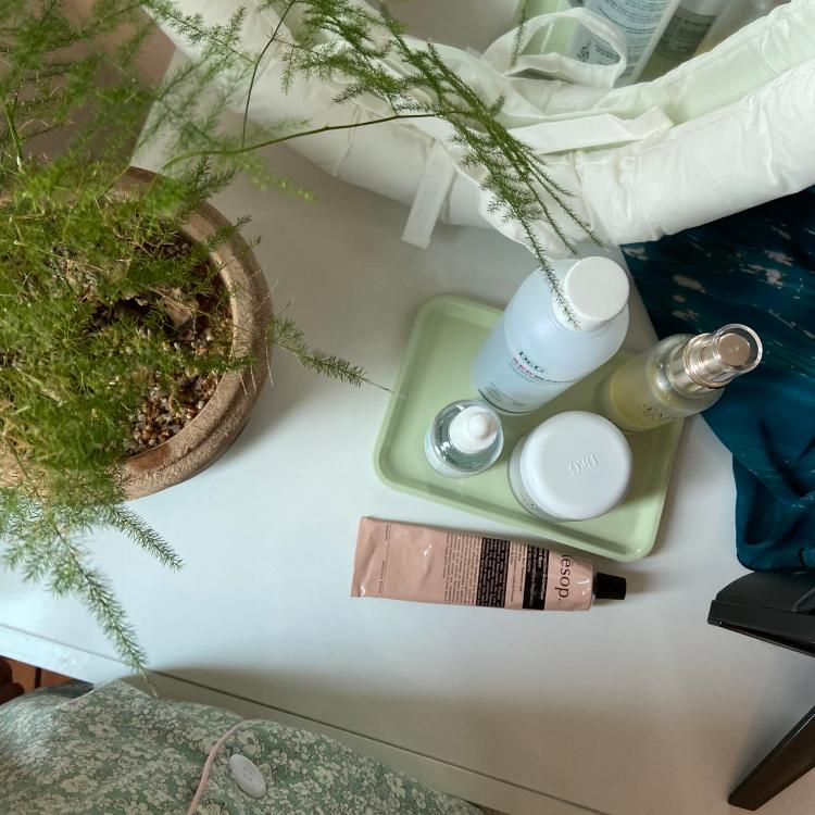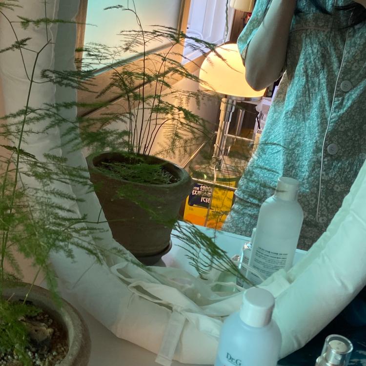 그리고 식물을 놔서 좀 더 생기 있는 곳으로 연출하고 싶었어요. 거울 앞에는 자주 사용하는 스킨케어 제품을 트레이에 정리하여 올려놓아 깔끔하게 사용하고 있습니다.