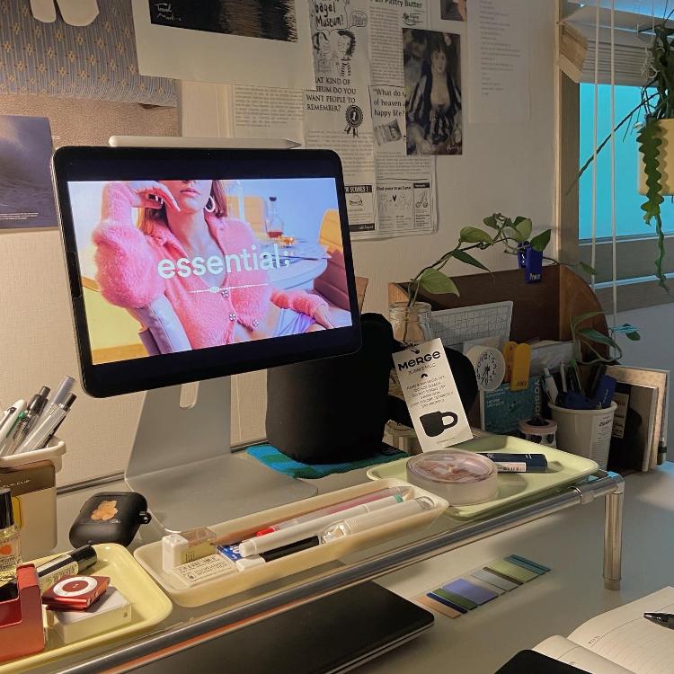 데스크 위 모듈 모니터 선반은 활용하기 좋은데 아이템 중 하나입니다. 아이패드 거치대를 올려놓거나 노트북을 올려놓고 사용할 때면 작은 트레이들을 선반 아래 정리해서 깔끔하게 사용할 수 있습니다. 모니터 선반은 공간을 활용할 수 있는 아이템이라 아주 만족하며 사용하고 있어요.