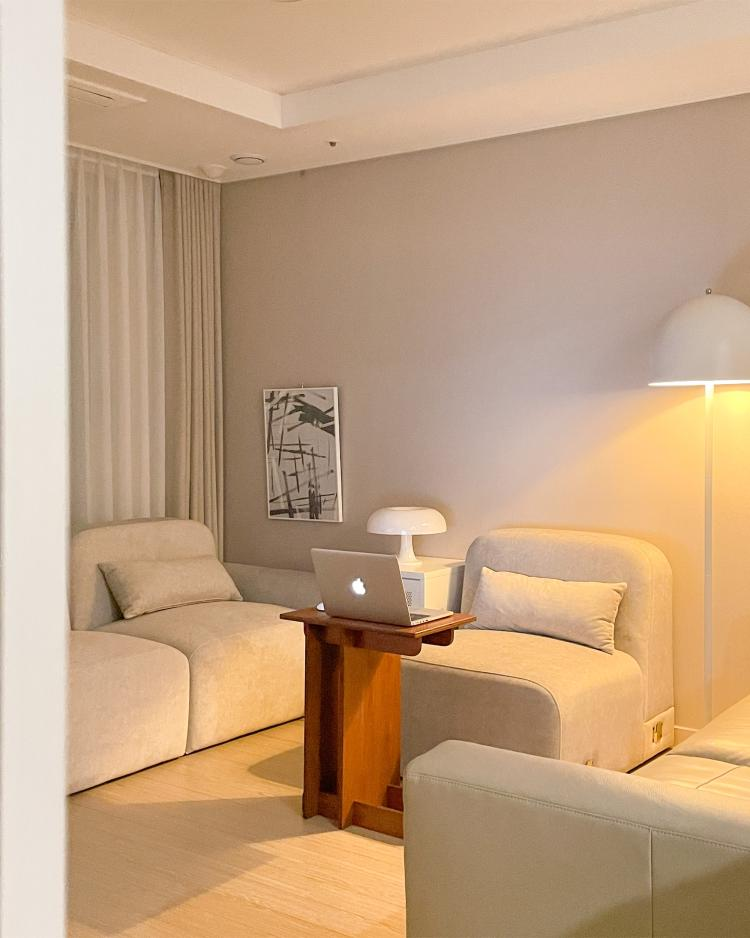 화사한 집에 꼭 있는 ‘이것’ 질리지 않는 베이지 무드 인테리어. 톤온톤 컬러로 러그를 깔아주면 더욱 화사하고 따뜻한 거실이 완성되는 것 같아요!