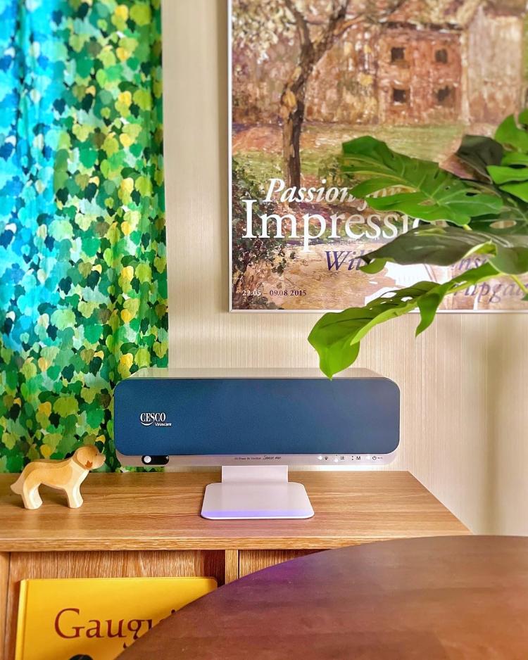 세스코 공기 살균기 양쪽에는 공기가 통하는 흡입구와 토출구가 있어요. 흡입된 공기는 1차로 카본 필터에 의해 악취와 유해물질이 제거되고요, 2차로 살균 터널을 지나면서 UV-C 살균램프에 의해 세균과 병원균 등 바이러스가 파괴된다고 해요:)