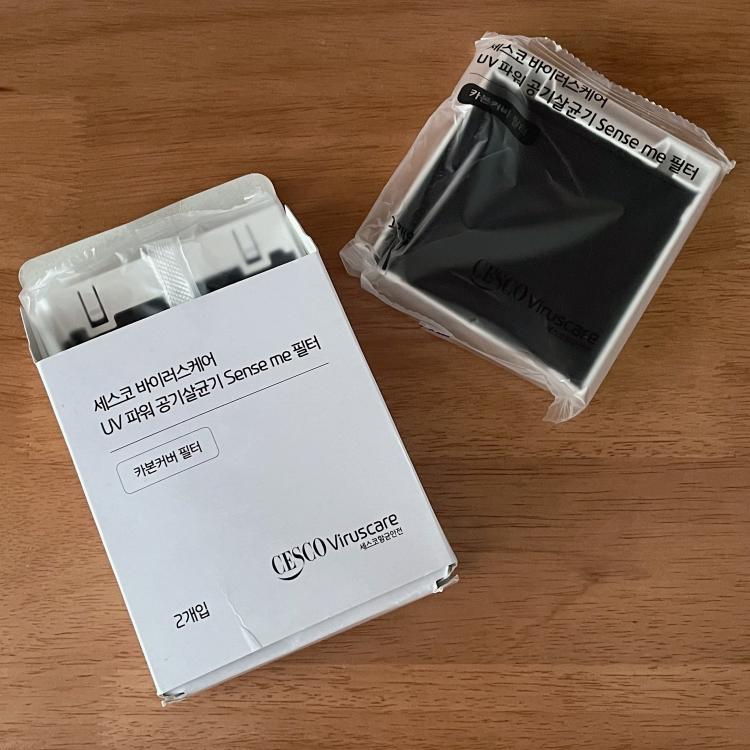 카본 필터는 공기 살균이 왼쪽 아래에 손으로 쉽게 빼고 넣을 수 있게 장착되어 있어요. 필터는 약 4개월마다 교환하는 것이 좋고 처음에 여분으로 2개가 추가 제공되기 때문에 1년동안 걱정없이 사용할 수 있어요:)