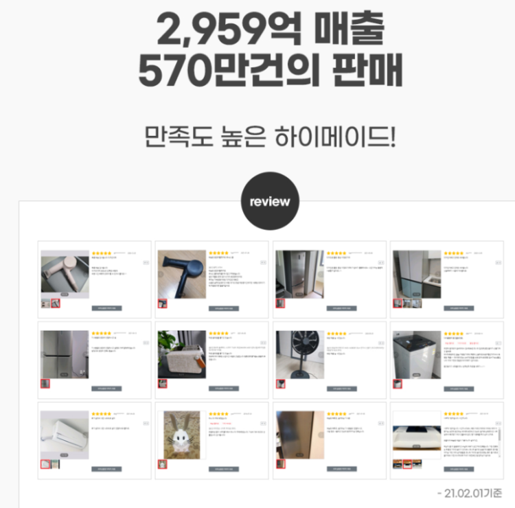 그리고 가전제품 뿐만 아니라 캠핑용품 등 운영 품목 수를 지속적으로 늘리고 있는데요.