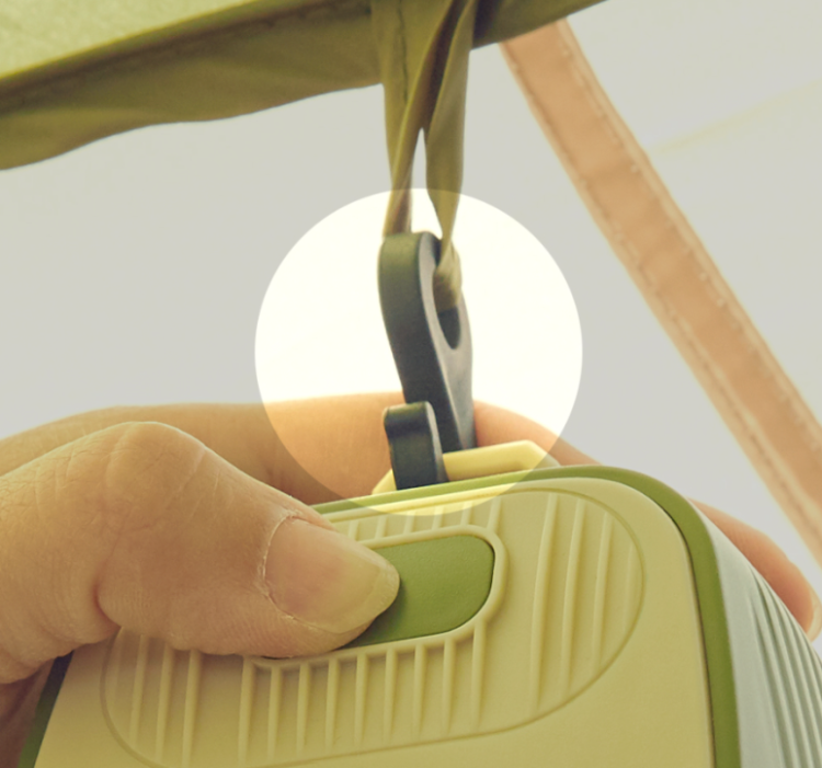 또한 고리형 랜턴으로 사용할 수 있기 때문에 텐트 내부 상단에 설치하여 어두운 텐트 안에서 감성적인 느낌을 낼 수 있습니다.