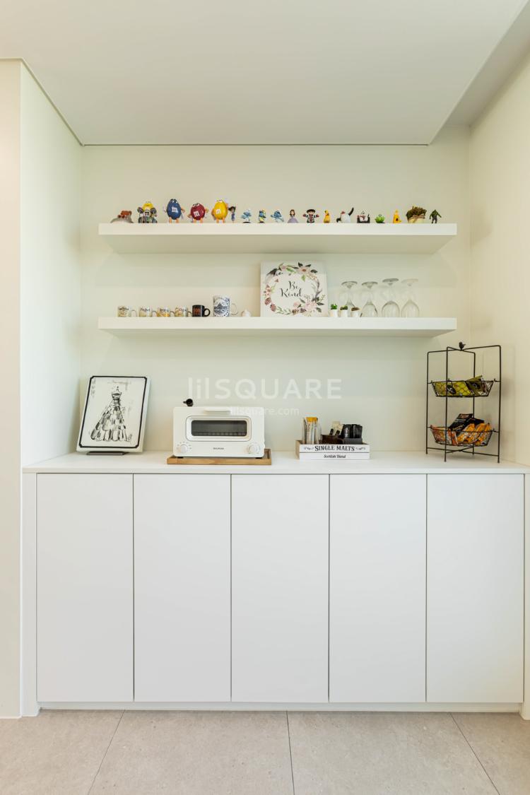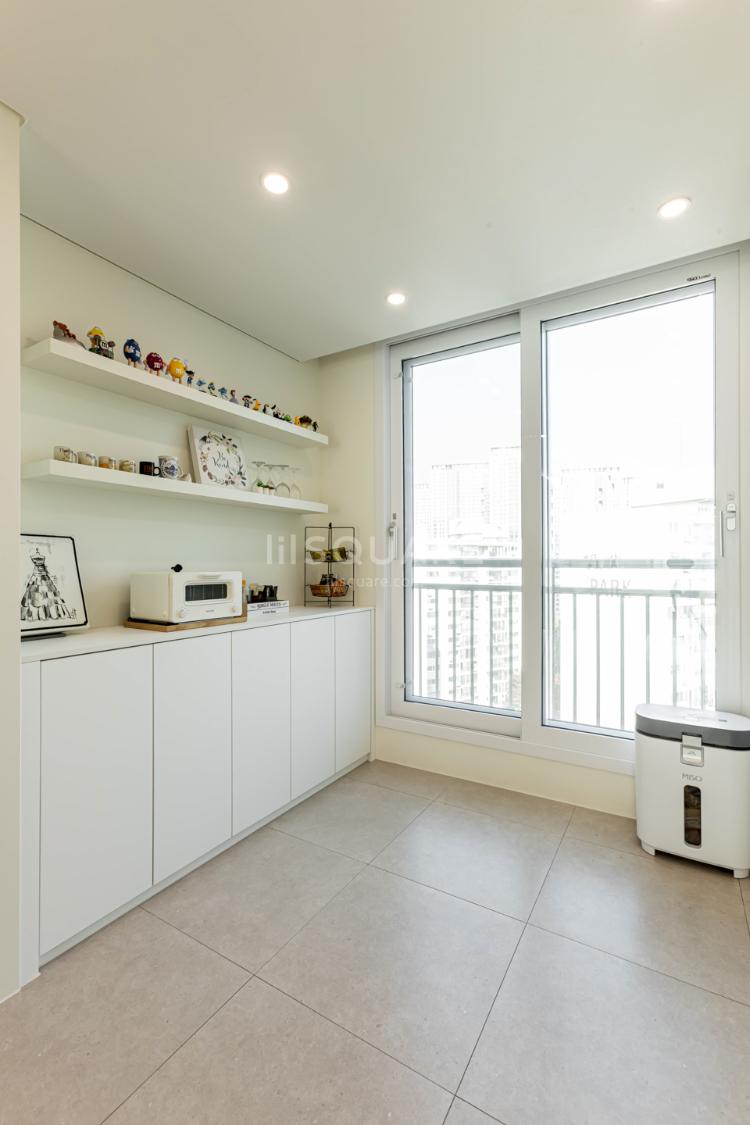 이제 거실 발코니는, 창밖을 바라보며 따뜻한 티타임을 준비하는 공간이 되었습니다. :) 고객님의 취향이 묻어나는 귀여운 소품들도 눈에 띕니다.