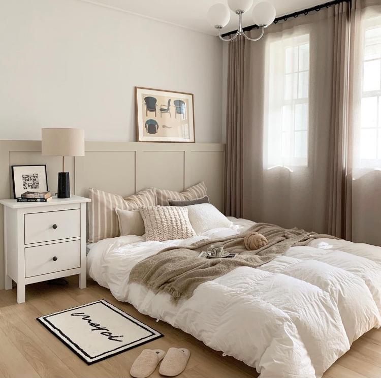 저희집의 가장 포인트가 되는 공간은 침실이 아닐까 싶어요. 샷시를 철거하고 가벽을 세워 오르내리창을 달아주었는데요. 일반 아파트에서는 볼 수 없는 창문이라 더욱 특별하게 느껴져요.
