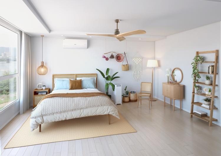 하이홈스가 추천드리는 라탄을 활용한 컨텐츠는 ‘휴양지 감성 가득한 신혼 침실 꾸미기’편 입니다. 홈캉스를 꿈꾸며 이국적분위기로 꾸며본 신혼 침실인데요! 라탄 가구와 우드&화이트 인테리어를 활용한 인테리어 아이디어 입니다.