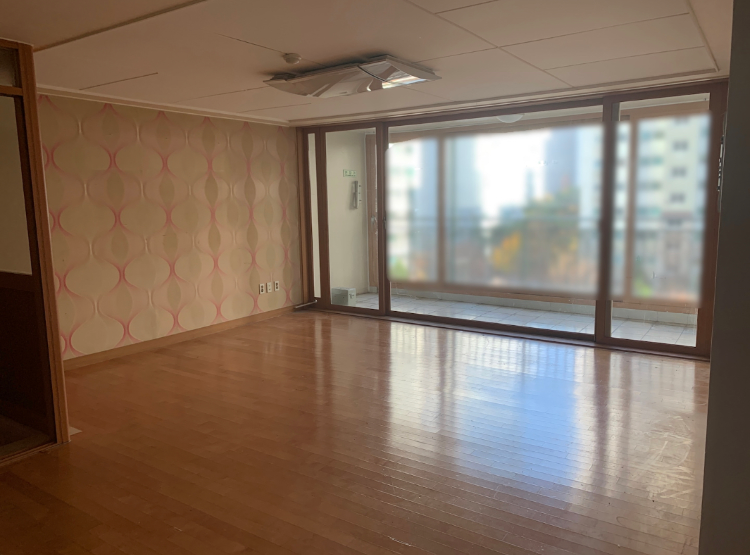 저희 집은 17년차에 접어든 구축 아파트입니다. 2BAY 구조라 공간이 효율적으로 구성되지는 않았지만, 베란다가 광폭이라 다른 아파트에 비해 거실이 굉장히 넓게 나왔다는 점이 가장 마음에 들었어요. 공간은 방3, 화2로 안방과 서재 그리고 드레스룸으로 사용하고 있습니다.