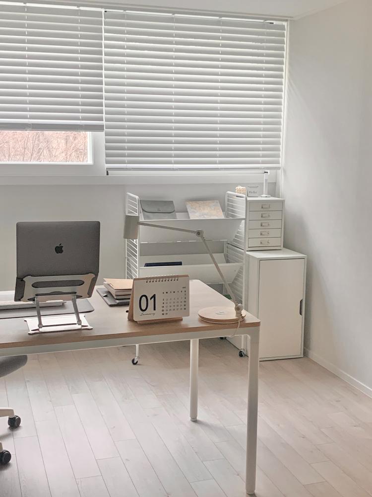 재택근무가 잦은 저희 부부는 요즘 서재에서 많은 시간을 보내고 있어요. 블라인드 밖으로 단지 내 나무가 보여 계절에 따라 달라지는 모습을 보는 것이 매력 중 하나인 것 같아요.