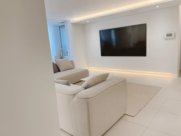 그리고 소파에 앉으면 우리집을 영화관으로 만들어 주는 TV는요, 85인치로 골랐는데요. 50평형 거실이라 그런지 크다는 느낌이 별로 안 들고 딱 좋아요.