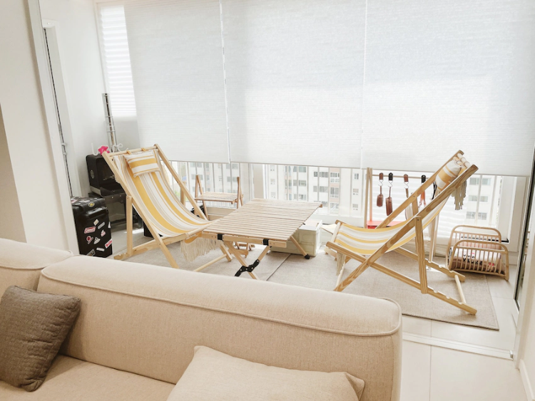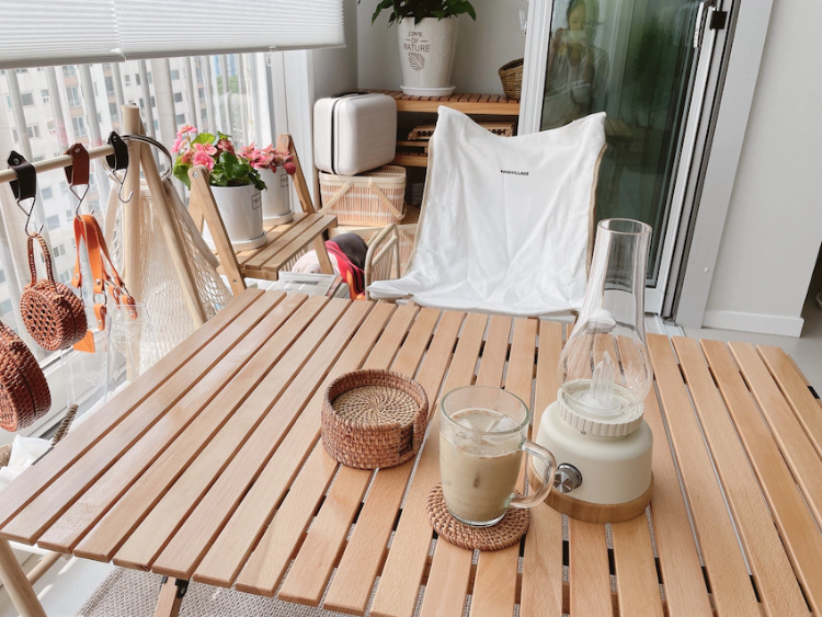 정남향 집이라 그런지 여름엔 많이 덥지 않고, 겨울엔 따뜻한 해가 들어와서 베란다 공간이 따뜻하네요. 낮에는 차 한 잔, 저녁에는 술 한 잔 하기 딱 좋은 우리집 힐링 장소 홈캠핑장이랍니다. 가끔 혼자만의 시간을 즐기기도 좋아요. ㅎㅎ