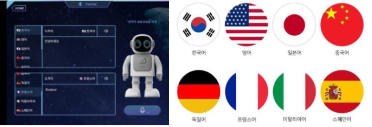 핸드폰에 한국어로 말하게 되면 총 8개 언어로 번역하여 씽고가 말할 수 있는 기능이 있습니다.