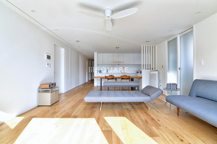 먼저 보여드릴 곳은 거실이에요ㅎ 거실 벽면은 요즘 많이들 선호하시는 무몰딩을 적용해 벽체 도장작업을 진행했어요. 거실 메인조명 자리에는 조명대신 화이트 실링팬을 설치해 주방 팬던트와 조명 느낌이 중복되지 않도록 했답니다ㅎ