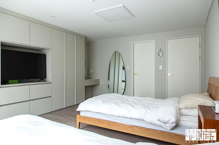 침실은 따뜻한 색감인 뉴트럴 컬러를 사용하여 포근하면서도 아늑한 느낌이 들도록 했어요. 색감과 분위기가 편안하죠?