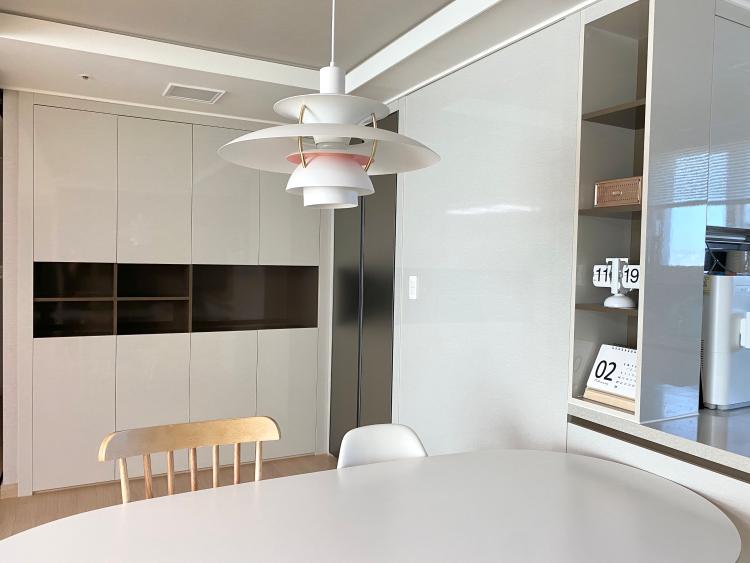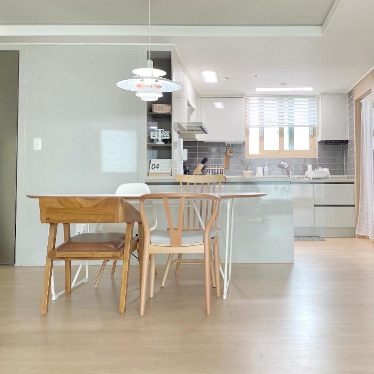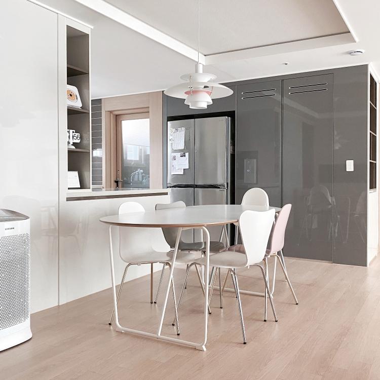 주방에 있는 테이블을 거실쪽에 둬서 홈카페를 즐기기도 하지요. 작은 원형 식탁을 하나 구입하고 싶은 데 큰 가구를 들일 때는 항상 고민 하게 되는 거 같아요.