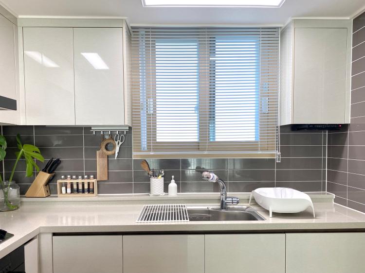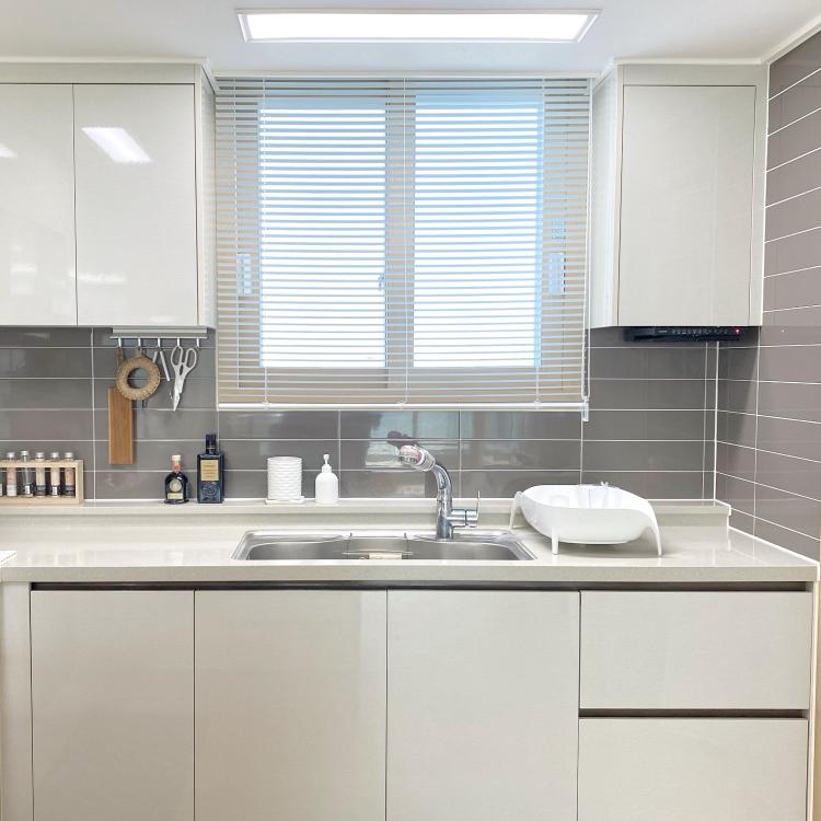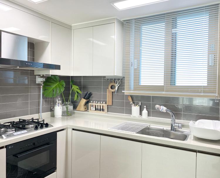 가장 애정하는 공간인 주방이에요. 싱크대 위에는 물건을 많이 안 두려고 노력하고 있어요. 아이들 손이 닿지 않는 곳이라 잘 유지 되는 편이예요.