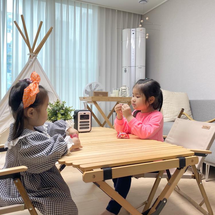 요즘 캠핑 가기가 쉽지 않아서 집에서 소박하게 홈캠핑을 즐기기도 했지요. 아이들이 여기서 간식도 먹고 밥도 먹고 하는 데 작은 변화를 아이들은 참 좋아하더라고요.