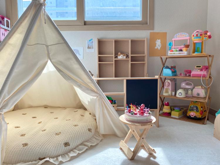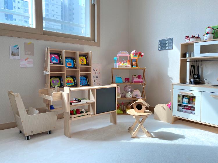 아이들이 주방놀이도 하고 책도 읽고 역할놀이도 하며 즐겁게 노는 놀이방입니다