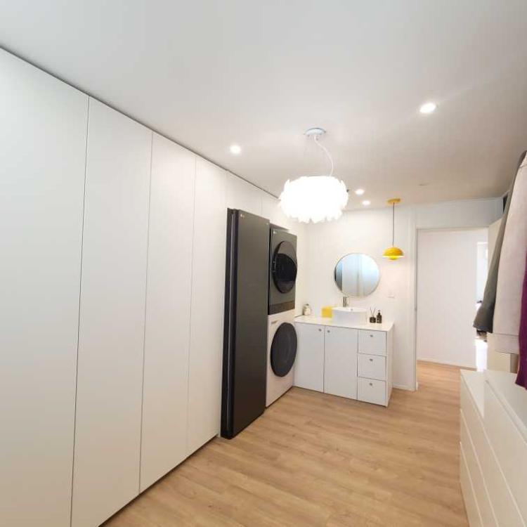 또다른 화이트 드레스룸인 tpfk****님의 방입니다. 드레스룸에 건조기를 넣어두셨는데 매우 잘한 일 같다고 하시네요.