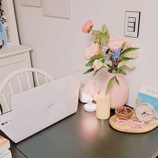 chsp****님의 아기자기한 작업실 입니다. 화이트 작업실이지만 핑크 소품들로 그 옆을 꾸며주셨는데요. 덕분에 핑크 소품들이 더욱 눈에 띄는 것 같아요