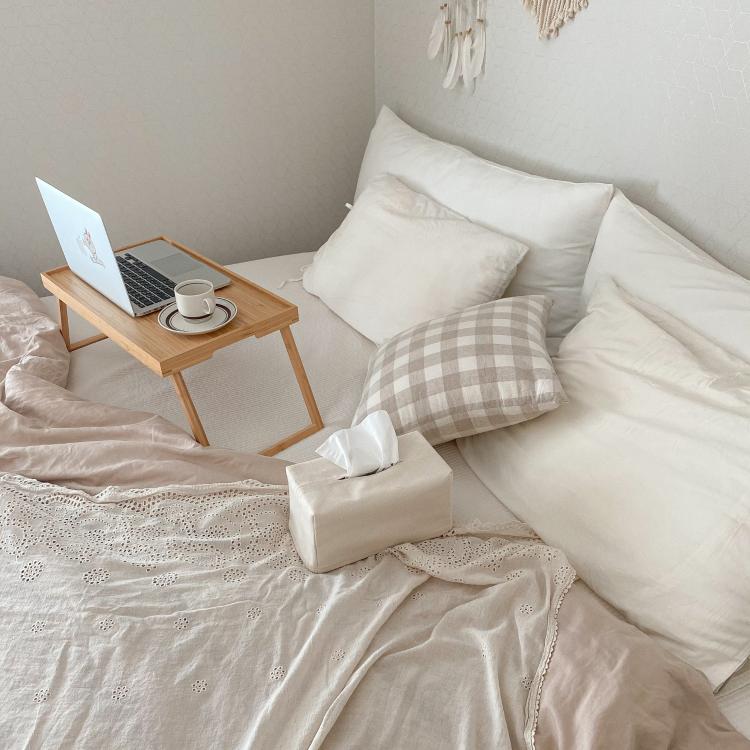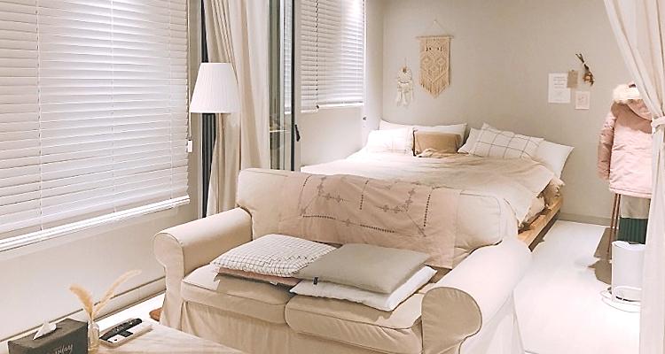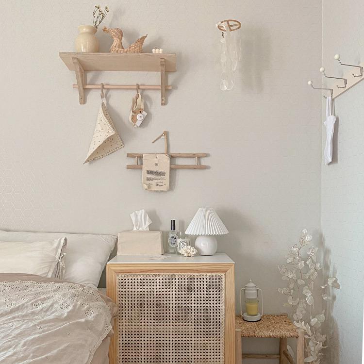잠을 자는 공간인 만큼, 포근한 느낌을 줄 수 있는 인테리어 소품을 배치해두었어요.