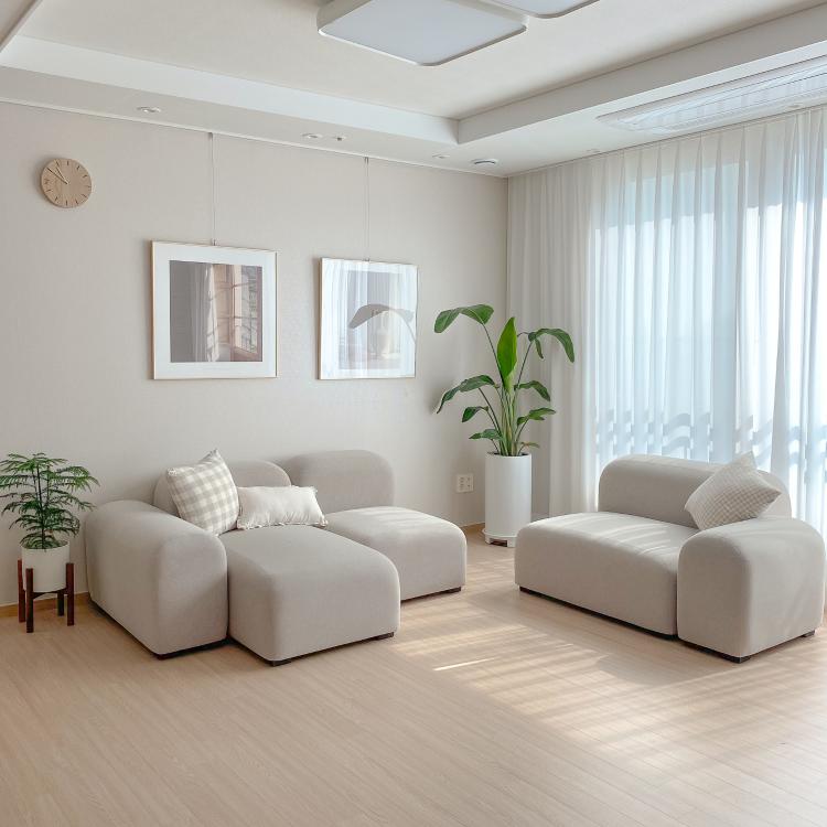 모듈 소파를 활용해 가끔은 배치 변화로 다양한 분위기를 주고 있어요.