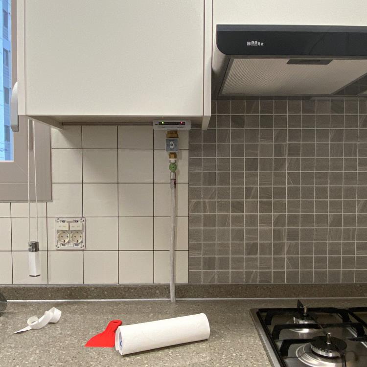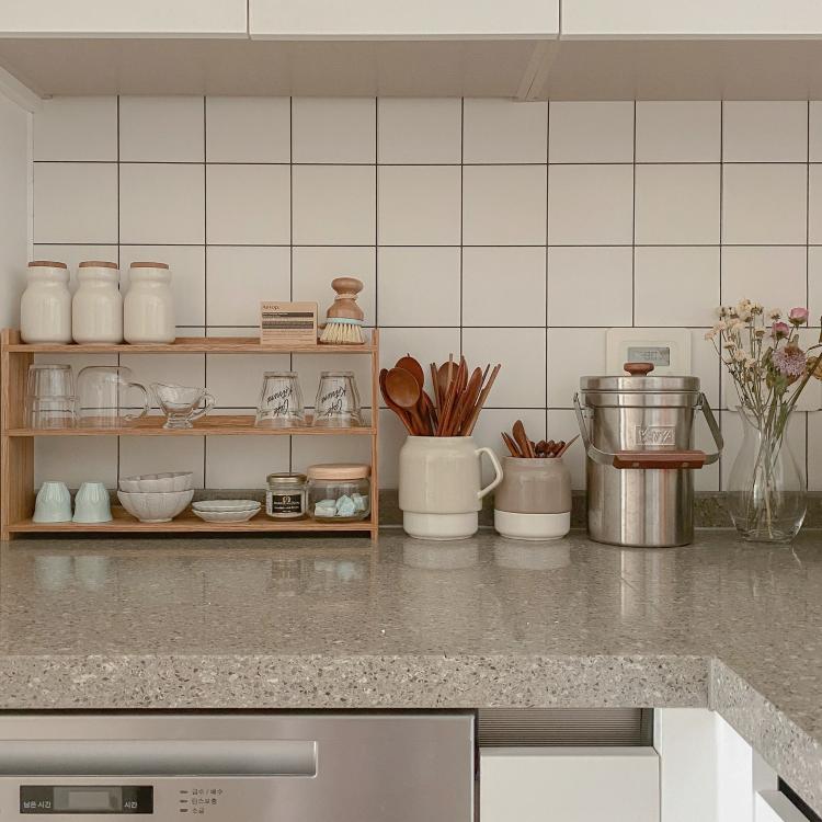 반셀프 인테리어중 가장 많은 변화를 보인 곳은 바로 이 주방인데요,보시다시피 어두운 주방 타일은 ‘타일 시트지’를 이용해 셀프로 바꾸어 주었어요.(타일만 바뀌었는데도 주방 분위기가 다르지 않나요? 흐뭇)