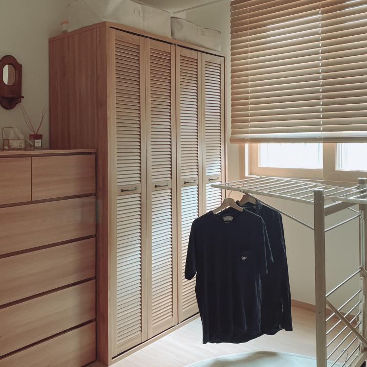 한 개의 방은 드레스룸으로 사용하고 있어요. 결혼과 동시에 독립을 처음 하게 되면서, 가장 가지고 싶던 공간이였는데, 요즘 외출할때면 이곳에서 어떤 옷을 입을 지 행복한 고민을 한답니다.