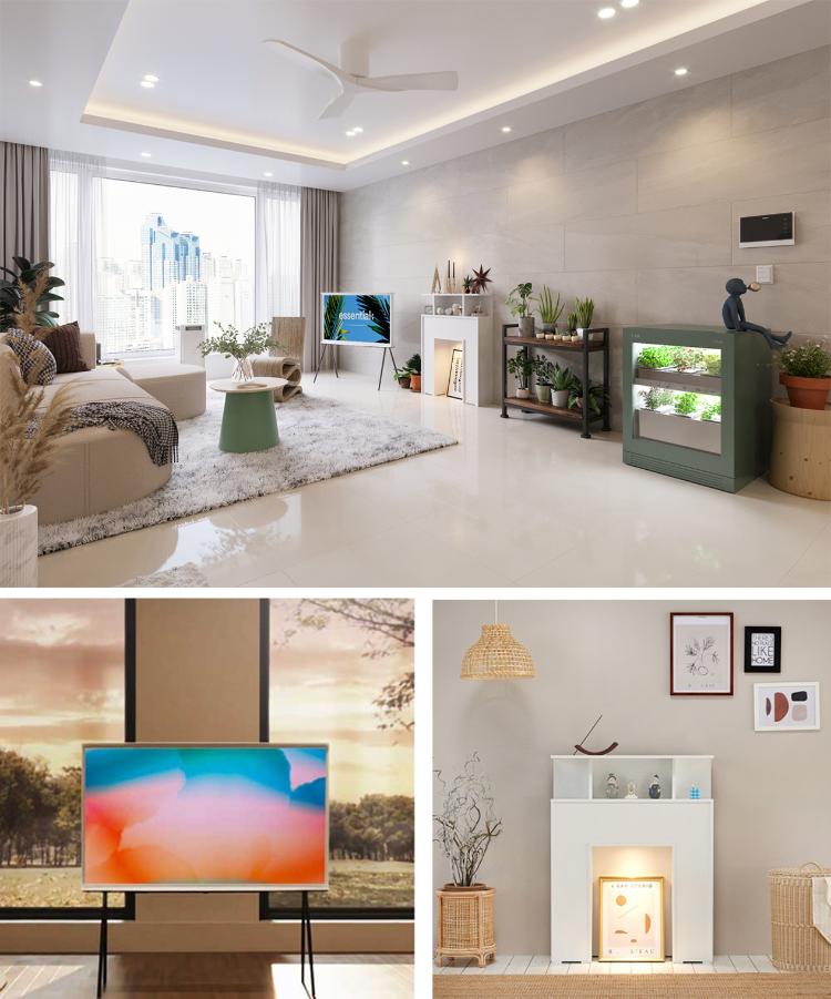 먼저, 거실 분위기를 살려주는 세리프 TV는 I형태의 고급스러운 형태와 모바일과 연동되는 편리함을 갖추고 있습니다. 또 매직스크린모드로 TV가 꺼져있어도 분위기 있는 배경화면을 즐겨보세요. 많은 장점을 가진 세리프 TV는 신혼 필수템으로 추천 드리는 제품입니다.