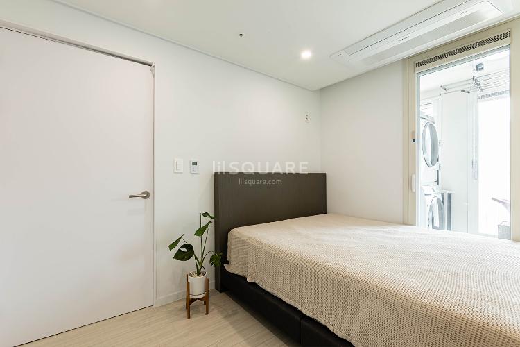 시스템에어컨 설치는 공간 활용에 큰 도움 되고 있어요. 침대 옆으로도 충분히 여유 있는 모습이죠.