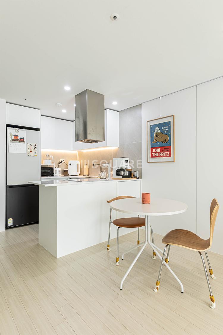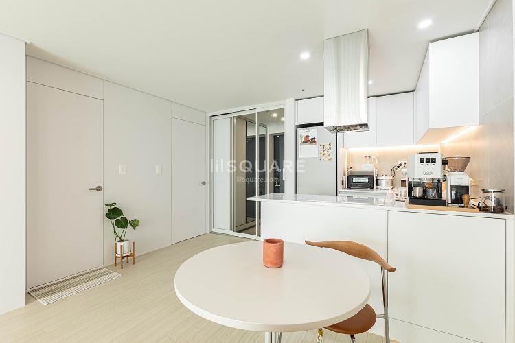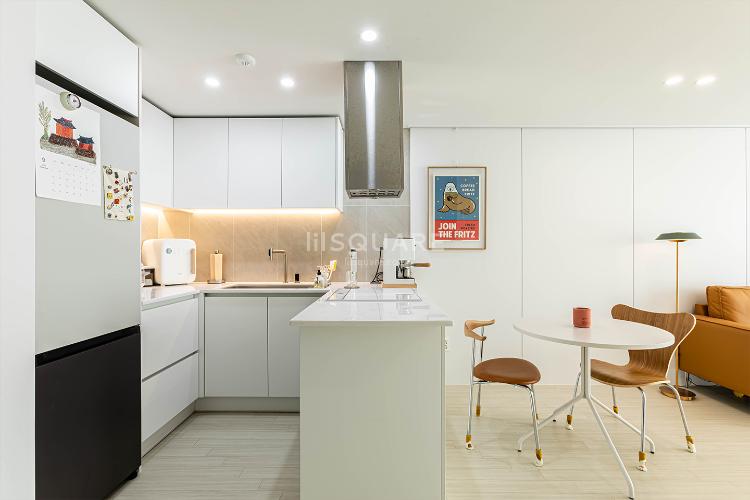 공간 확보와 분위기 변신까지 성공한, 신축 아파트 인테리어 주방의 모습이에요.