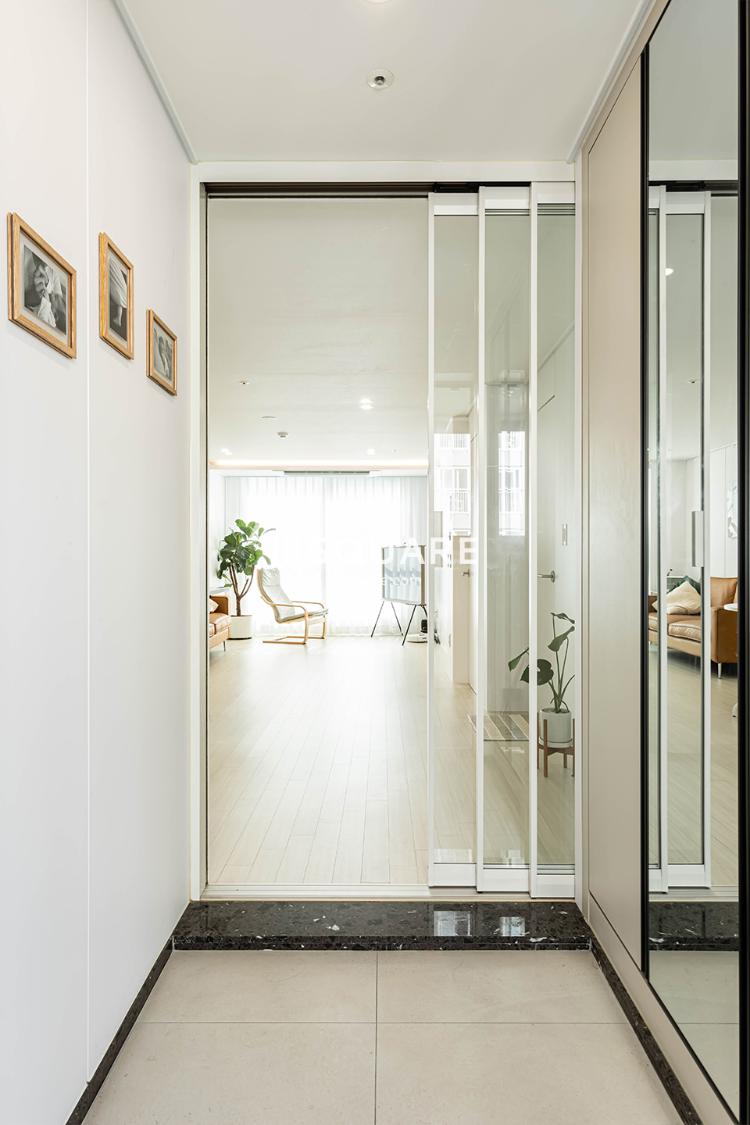그리고 하나 더, 히든도어 디자인을 위해 방 문틀과 문 작업 진행했는데요. 그 과정에서 안방 문틀에 살짝 틈이 생겨 바닥에도 공백이 발생하기도 했습니다. 바닥은 그대로 살리는 프로젝트였기 때문에, 동일한 바닥 자재 단 몇 조각을 구해(😉) 마루 시공팀의 원조로 완벽한 바닥과 문틀을 완성했습니다. :) 사전 준비를 완벽하게 한다고 해도 시공이 시작되면, 예기치 못한 상황들이 발생하지만 고객과, 현장과 제대로 소통만 한다면 원활하게 문제 해결할 수 있습니다.