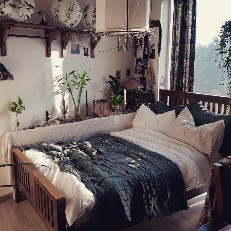 침대 프레임에 많은 고민을 하셨는데 원하시던 튼튼한 원목 프레임을 발견해서 만족하고 사용하고 계신다합니다. 좀 더 부드러운 느낌을 위해 안쪽에는 쉬폰커튼, 바깥쪽에는 암막커튼(브라운&베이지)를 시공하신 센스도 꼭 봐주세요!
