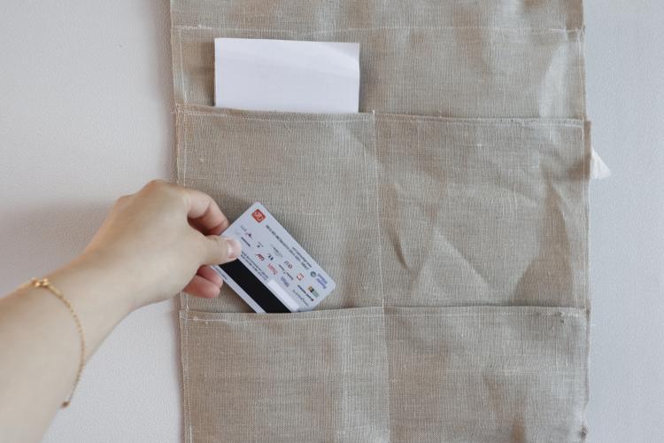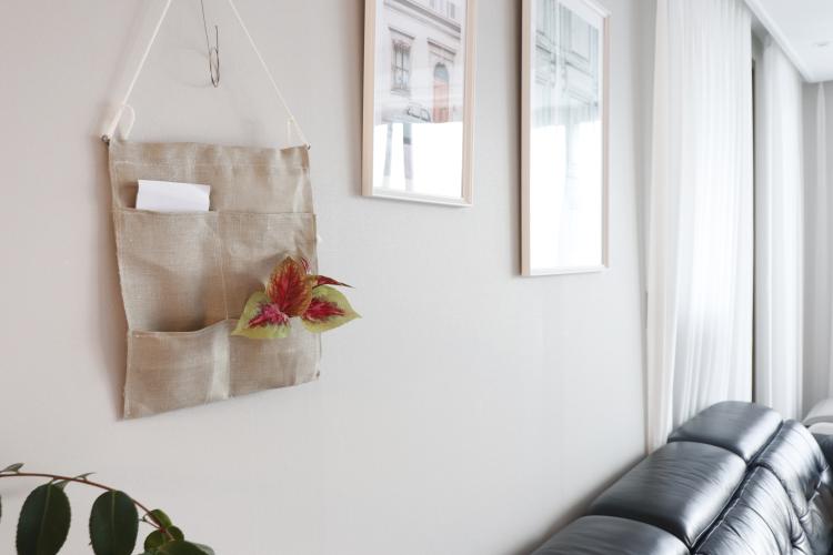 생각보다 포켓이 깊어(약 20cm) 긴 영수증도 깔끔하게 보관할 수 있어요. 벽걸이니까 귀엽게 포인트도 한번 주어봤어요:)