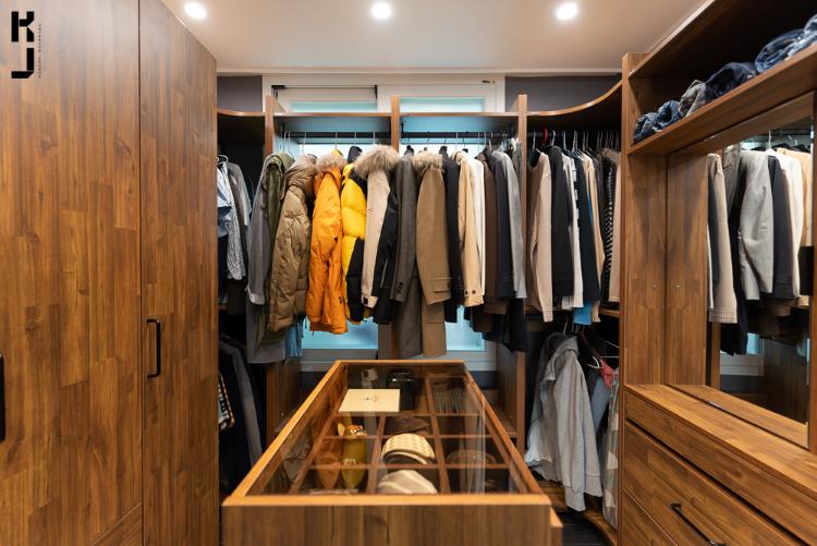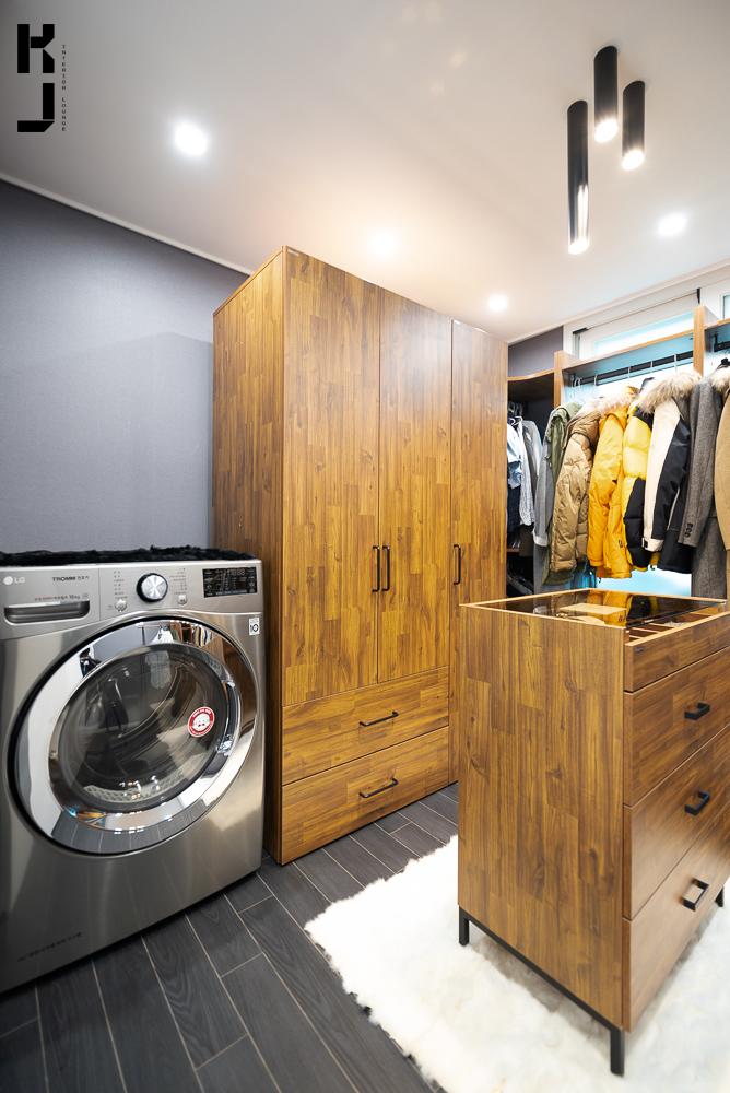 나무는 멀바우와 월넛계열로. 좀 어두운 우드 톤으로 통일감을 주었어요. 곳곳의 숨은 수납공간들 절대 포기할 수 없다!