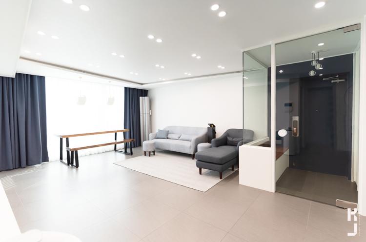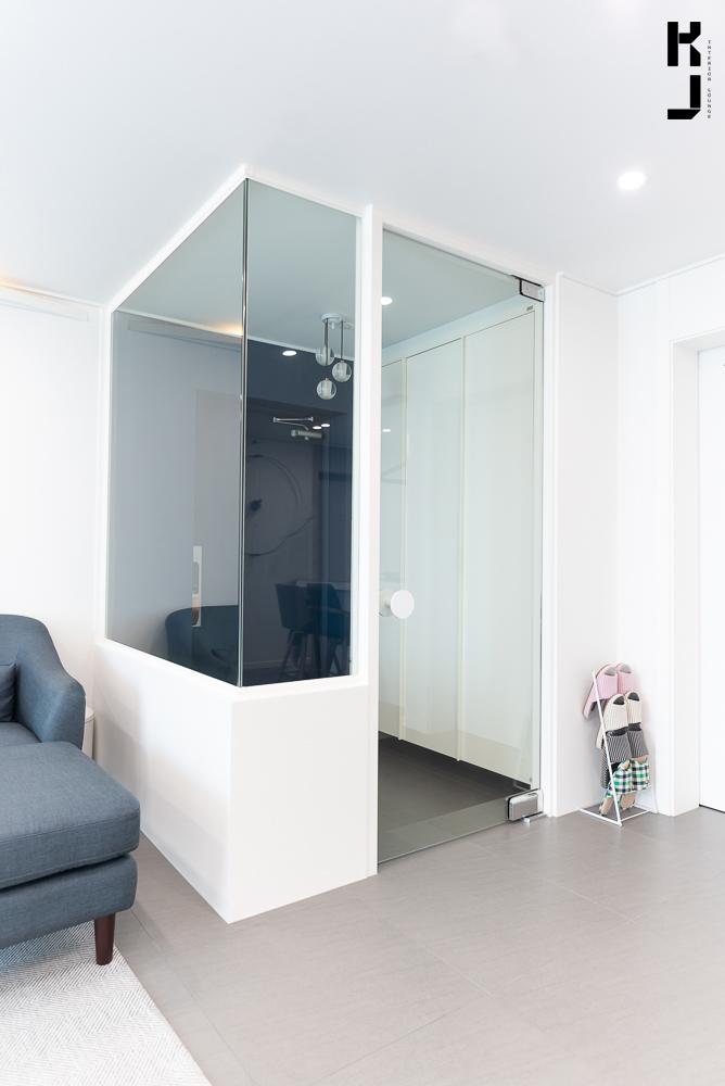 집에 들어서자마자 한층 더 넓어보이고, 깨끗해 보이는 효과가 아주 좋아요! 유리 너머로 보이는 거실이 넘나 멋스러운 것. 정말 탐나는 집인걸유?