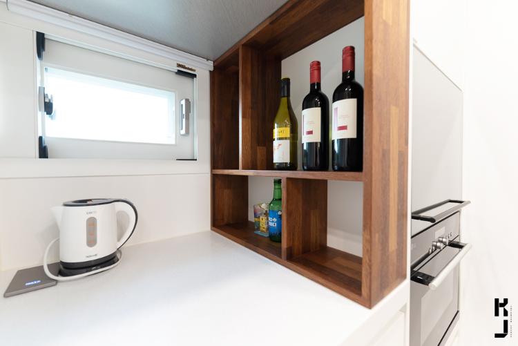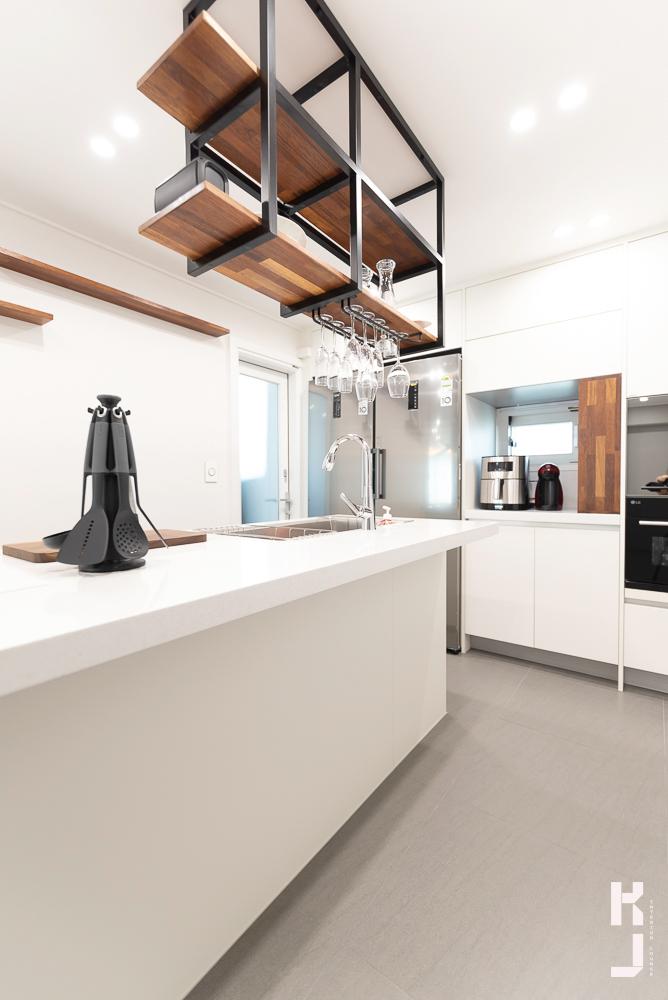 개수대 위 쪽에는 클라이언트님께서 요청 해 주신 천장 부착형 선반! 와인까지 걸어놓으니 이건 뭐.. 넘나 멋지잖아요!