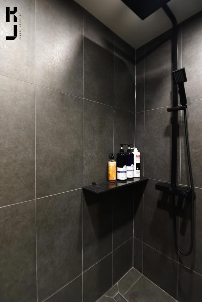 샤워부도 깔끔하게 블랙 수전과 블랙 선반으로 마무리!