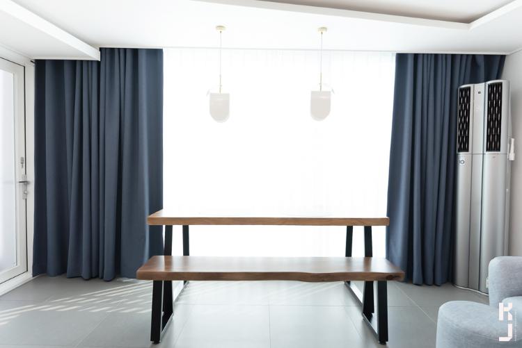 거실은 확장을 하고 테이블을 놓았어요. 펜던트 2개 또 달아줘야죠! 색감은 화이트로 은은하게 포인트 :D 비대칭한 사선 간접등이 인테리어효과를 마구마구ㅎㅎ