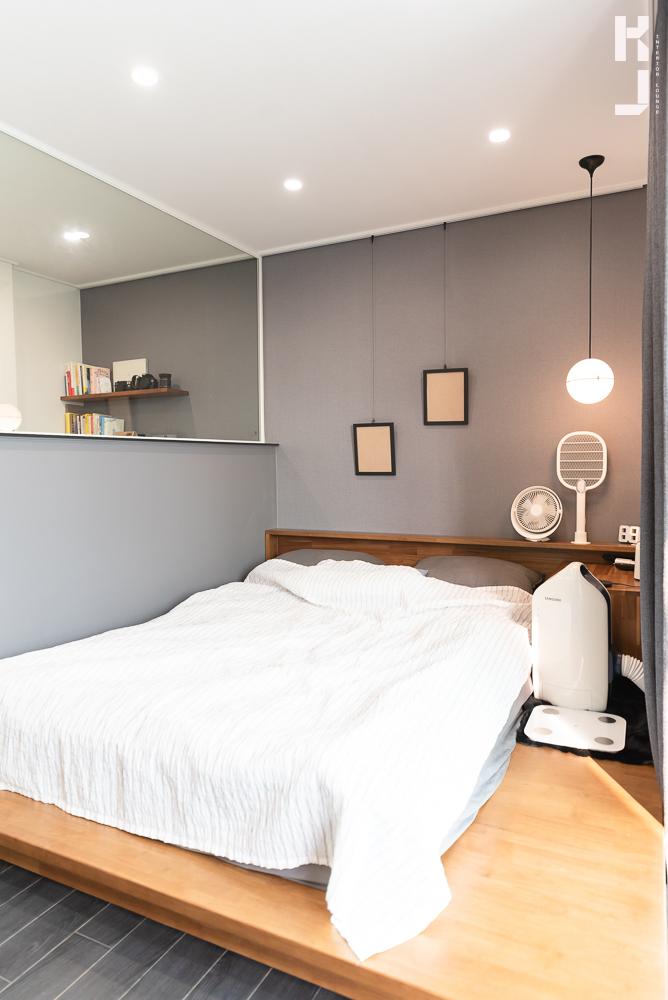 와~! 이 곳은 안방이에용. 서재도 필요하고, 침실도 필요하고... 이럴 때는 가벽인테리어가 최고죠! 가벽 상부에는 유리를 시공해 답답하지 않게, 또한 인테리어 효과도 주었어요 ㅎㅎ
