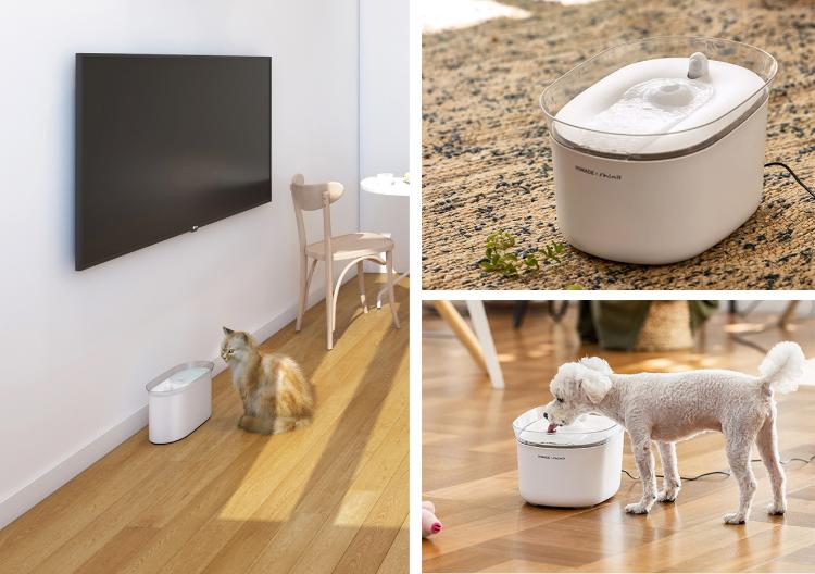 싱글 펫테리어에서 눈에 띄는 아이템은 바로 이 자동급수기! 반려묘 세 마리 중 한 마리는 만성 탈수 상태라는 말이 있을 정도로, 고양이들의 물 섭취량이 부족하다고 합니다. 특히 외출 후 반려동물의 섬세한 케어가 힘든 싱글족이라면 반려동물을 위한 하이메이드x신일 자동급수기를 추천 드립니다. 물이 고여 있는 상태가 아닌 흐르는 깨끗한 물을 반려동물에게 제공할 수 있고 3가지 모드 중 스마트모드는 1.5m 이내 반려동물이 감지되면 자동으로 작동됩니다. 또, 완전 분리 세척이 가능해 위생적으로 사용 가능합니다.