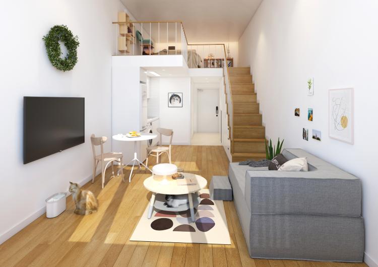 따뜻한 햇살이 아늑한 느낌을 주는 화이트&우드 톤의 복층 오피스텔입니다. 반려묘들은 공간을 수평 뿐만 아니라 수직으로도 인식하기 때문에, 복층 공간은 고양이를 위해 탁월한 선택이라고 할 수 있답니다. 그리고 컬러가 많은 인테리어 보다는 전체적으로 우드톤을 선택해 내추럴한 인테리어를 하면 반려동물에게 심리적 안정감을 줄 수 있다는 사실!