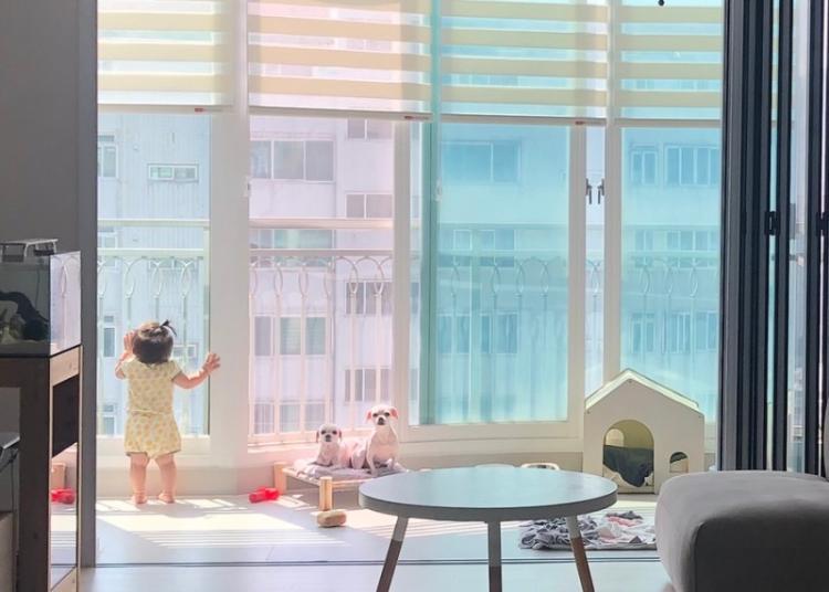 베란다 있는 집을 선호하신 이유가 함께 생활하는 강아지 공간을 위해서였다고 하는데요! 놀이공간으로 채광이 좋아 강아지들 미모도 업되고 있단 사실! 반려견과 아이가 함께 알콩달콩 사는 리나찡님의 집은 아래 배너에서 확인하실 수 있습니다