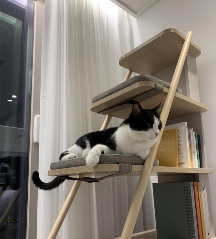 캣타워 캐스터네츠 책장을 이용하여 거실에 고양이들이 자유롭게 사용할 수 있는 공간을 마련하신 kahyun님의 펫테리어입니다:) 캣 타워 옆 스크래쳐 또한 귀여운 펫테리어가 되어주는대요!