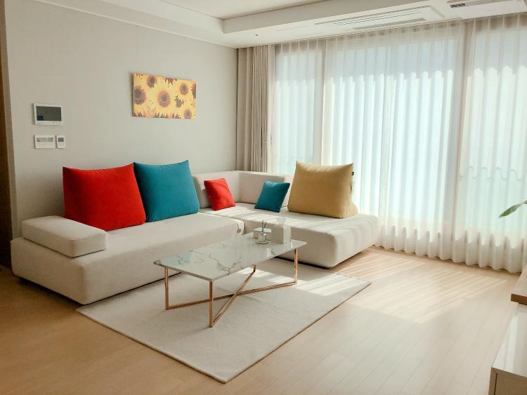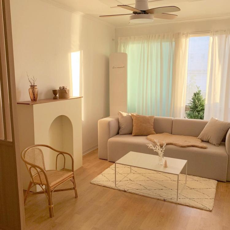 낮은 가구로 집을 꾸미신 프로집순희 고객님의 집입니다. 세련되고 모던한 것보다 내추럴하고 빈티지한 인테리어를 추구하셔서 직선보다는 둥글고 폭신한 가구를 이용하여 집을 꾸며주셨습니다.